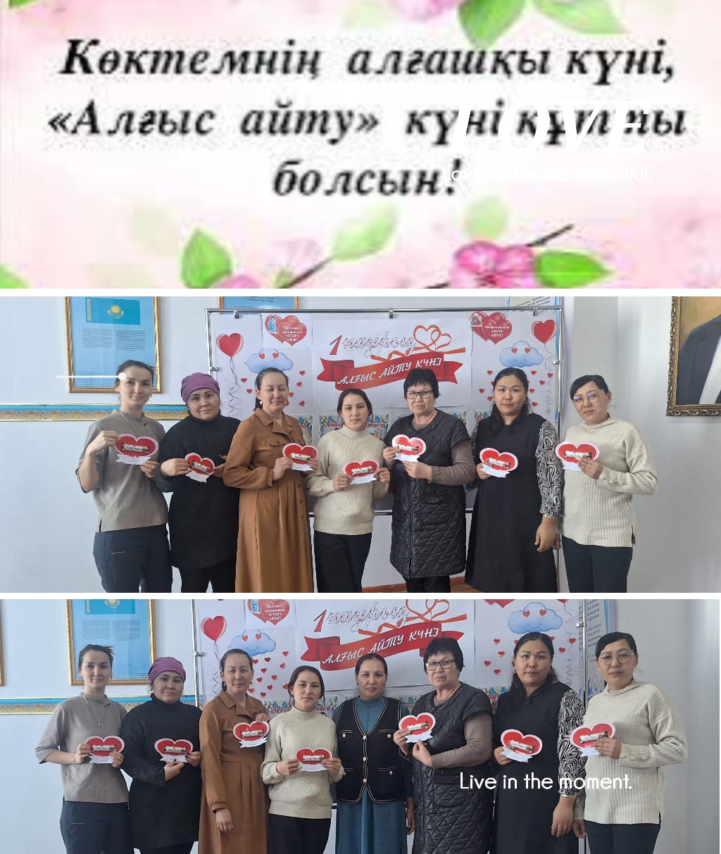 Бүгін Алғыс айту күніне орай «Алғысым шексіз...» тақырыбында Ж.Сабыржанұлы атындағы негізгі орта мектебінің ұстаздарын алғыс айту күнімен құттықтадым. Қазақ кең болсаң, кем болмайсың деген әрқашан. Сол мінездің арқасында өзінің ғана емес, өзгенің де көңілін тауып, кішпейілділік, кешірімді болу, алғыс айта білу секілді қасиеттер де бойымызға дарыған. Сондықтан, көктемнің алғашқы күні алғыс айту мерекесінде ең алдымен айналамыздағы адамдармен жақын болуымыз керек. Кешірімді болған кішірейіп қалмайды дейді елбасы. Яғни, кез-келген қысылтаяң шақта ел ішіндегі бейбітшілік пен тұрақтылықты бекемдей біліп, ұлт пен ұлыстар арасындағы ынтымақтастықты нығайту арқылы межелеген мақсаттарымызға жету маңызды. Кезінде бауыр басып, қанатын Қазақстанда қатайтқан отандастарымызбен бірге шаңырағымызды биіктетіп, керегемізді кеңейту әрқайсымыздың міндетіміз. Алғыс айту күні – бұл, ең алдымен елімізде тыныштық пен үндестік, өзара сенімділік пен барлық қазақстандықтарға деген құрметтің орнығуына негіз болған бейбітшілік пен келісім саясатының салтанаты күні. Баршаларыңызға бізбен бірге болғандарыңыз үшін алғыс айтамыз!