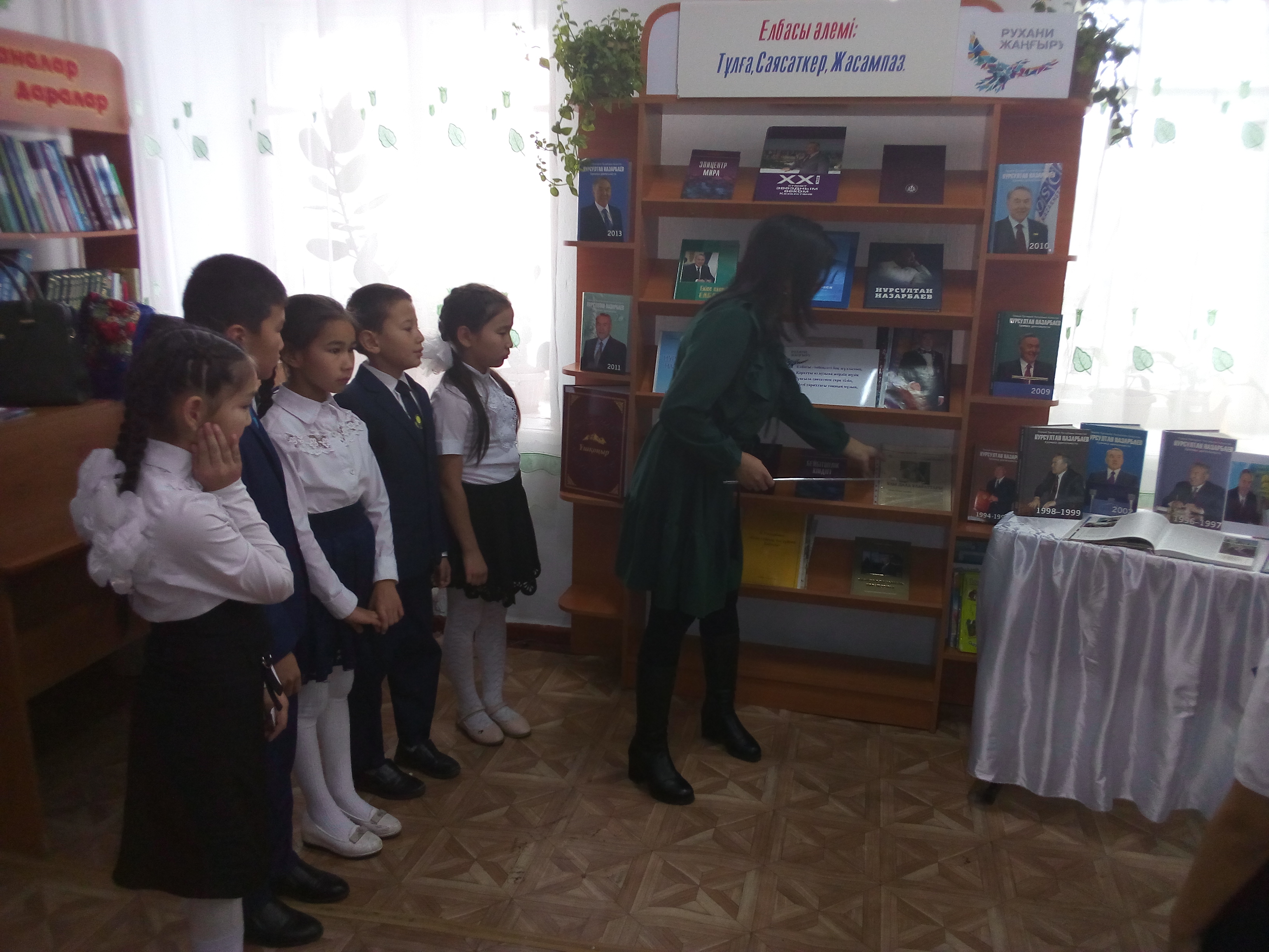 Тұңғыш Президент күні –бұл тарихи таңдау күні қазақстандықтардың Ұлт көшбасшысы. Тұңғыш Президент Нұрсұлтан Назарбаевтың төңірегіне топтасу күні . Тәуелсіздік пен бостандықтын игі мұраттарының баянды етіп, өркениетті елдерге тән қадамдар жасауда, ел алдындағы саясаткерлік, қайраткерлік, азаматтық және перзенттік парызын адал орындап, әлемдік беделге ие болған. Тәуелсіздігімізді алғаннан соң халықтың басын біріктіріп Н.Ә.Назарбаев тұңғыш елбасы болды. Елбасының бастауымен біздің Отанымыз әлемге танылды. Елім елдігін көрсетті, ерлігін тантты.Аталмыш тақырыпқа орай аудандық орталық балалар кітапханасы «Елбасы күні – елдікке құрмет мерекесі» атты әдеби сазды кеш ұйымдастырылды. Іс-шарамыздың мақсаты: Қазақ халқының тұңғыш президенті Н.Ә.Назарбаевтың өмір жолы, туып өскен, оқып білім алған, қызмет еткен жерлері туралы мағлұмат беру, елбасының өмірі жолынан үлгі ала отырып Отанын, халқын сүюге, ержүректілікке, азаматтыққа, потриоттық сезімін тәрбиелеу мақсатында өткізілді. Сонымен қатар Елбасымызға арналған слайд оқырмандар назарына үсынылып, және «Елбасы әлемі: Тұлға. Саясаткер. Жасампаз» атты кітап көрмесі ұйымдастырылып, оқырмандарға таныстырылып, шолу жасалды. Осы біздің іс-шарамызға ат салысқан Ы.Алтынсарин атындағы орта мектебінің 4 сынып оқушылары және сынып жетекшісі Қалиева Айгерім Мейрамханқызы атсалысты. Оқушылар тақпақтарын нақышына келтіріп, жатқа оқыса, екінші жағынан ән шырқалды. Жиналған оқырмандар ауданымыздың 4 мектептің 3-4 сынып оқушылары, көптеген мағлұматтар алып, жақсы лебіздерін айтып тарасты.