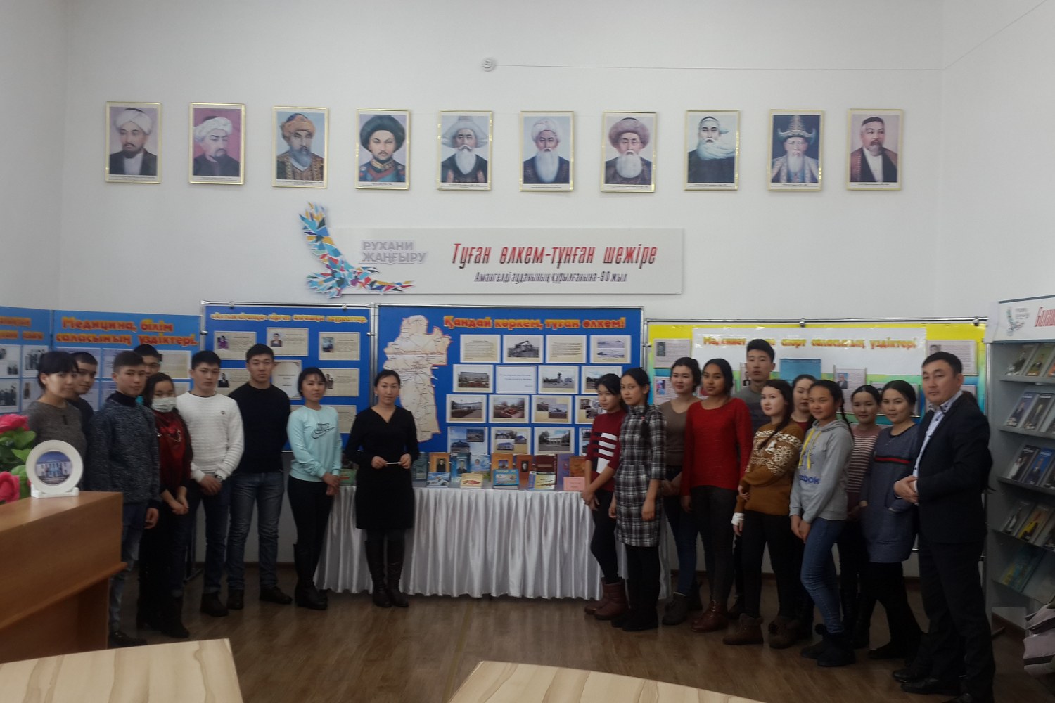 Амангелді аудандық орталық кітапхананың оқу залында ауданымыздың құрылғанына 90 жыл толуына орай «Туған өлкем – тұнған шежіре» атты кең көлемде тұрақты суретті – кітап көрмесіне Ә. Боранбаев орта мектебінің оқушыларына арналған саяхат ұйымдастырылды. Бұл іс-шараның мақсаты - өскелең ұрпақтың туған өлкесі жайында білімін жетілдіру, туған елінің , жерінің тарихын зерттеуге және патриоттық тәрбиеге баулу.