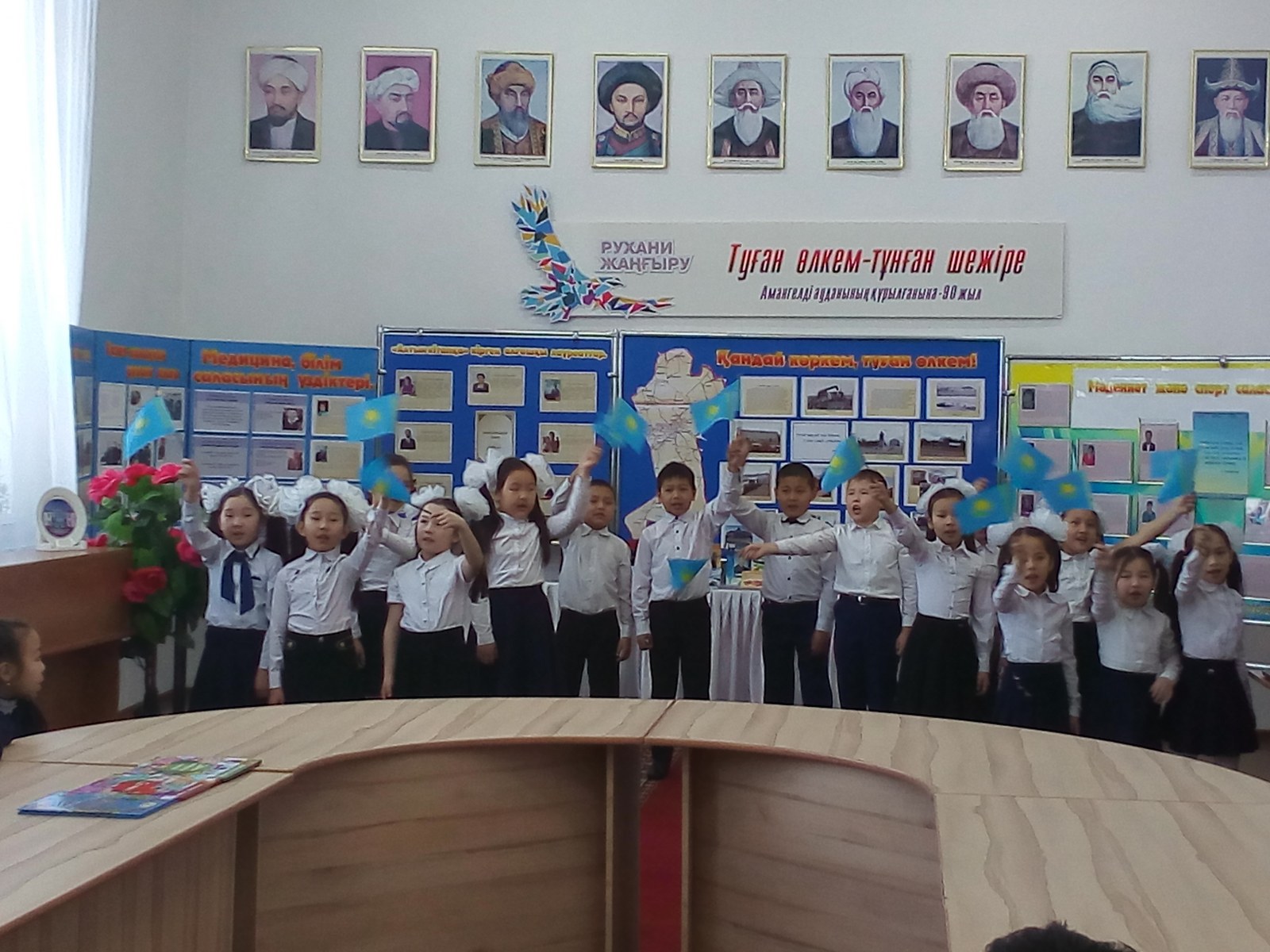 Кешке ауданымыздың 4 мектеп оқушыларымен мектеп мұғалімдері қатысты. Кеш шымылдығы туған жер тақырыбына арнап жазған мектеп оқушыларының жатқа мәнерлеп орындауларында өлке тарихынан сыр шертетін өз шығармашылықтарын жыр шумақтарымен ашылып, «Дархан дала-Аманкелді» атты бейнефильм мен слайд көрсетілімі ұсынылды. Кеш барысында ауданымыздың көркейіп, гүлденуіне орасан зор үлесін қосқан азаматтарға арналған «Туған өлкем- тұнған шежіре» атты кең көлемде суретті- кітап көрмесін аудандық орталық кітапхана қызметкері Бірмағанбетова Жансая көрмені таныстыру барысында сөз алып, тоқырау кезіндегі аудан азаматтарының жақсы игі істері туралы оқушыларға мол мағұлматтар беріп, жастарға ауданымыздың тарихын танып білуге шақырды. Кешке жақсы өтуіне үлес қосқан Ы.Алтынсарин орта мектебінің 3 сынып оқушылары мен сынып жетекшісі Гүлмира Кеңесқызы ат салысты. Кеш барысы әсем әнмен жалғасты.