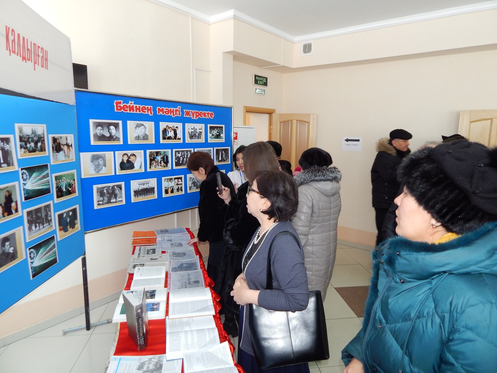 Кітапхана қызметкерлері жиналған жұртшылыққа көрмені кеңінен таныстырып,әңгіме-шолу өткізді.