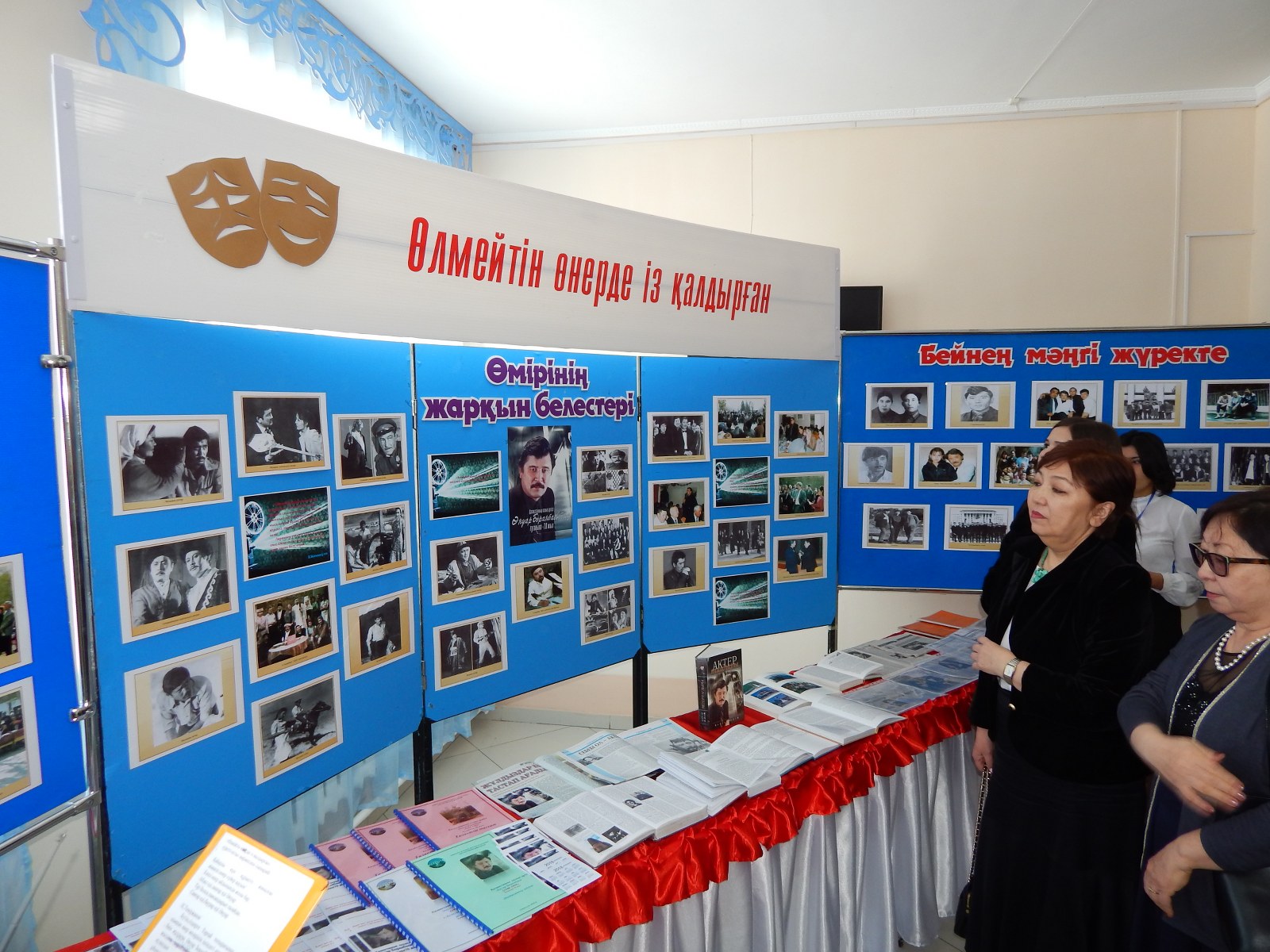 Атаулы іс-шараға Амангелді аудандық орталық кітапханасы «Өлмейтін өнерде із қалдырған» атты суретті-кітап көрмесін ұйымдастырды.Көрме үш бөлімнен жасақталды.