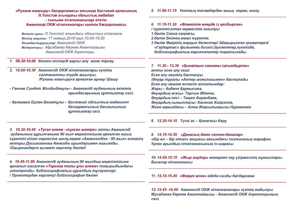 Амангелді ОКЖ кітапхана күні бағдарламасы