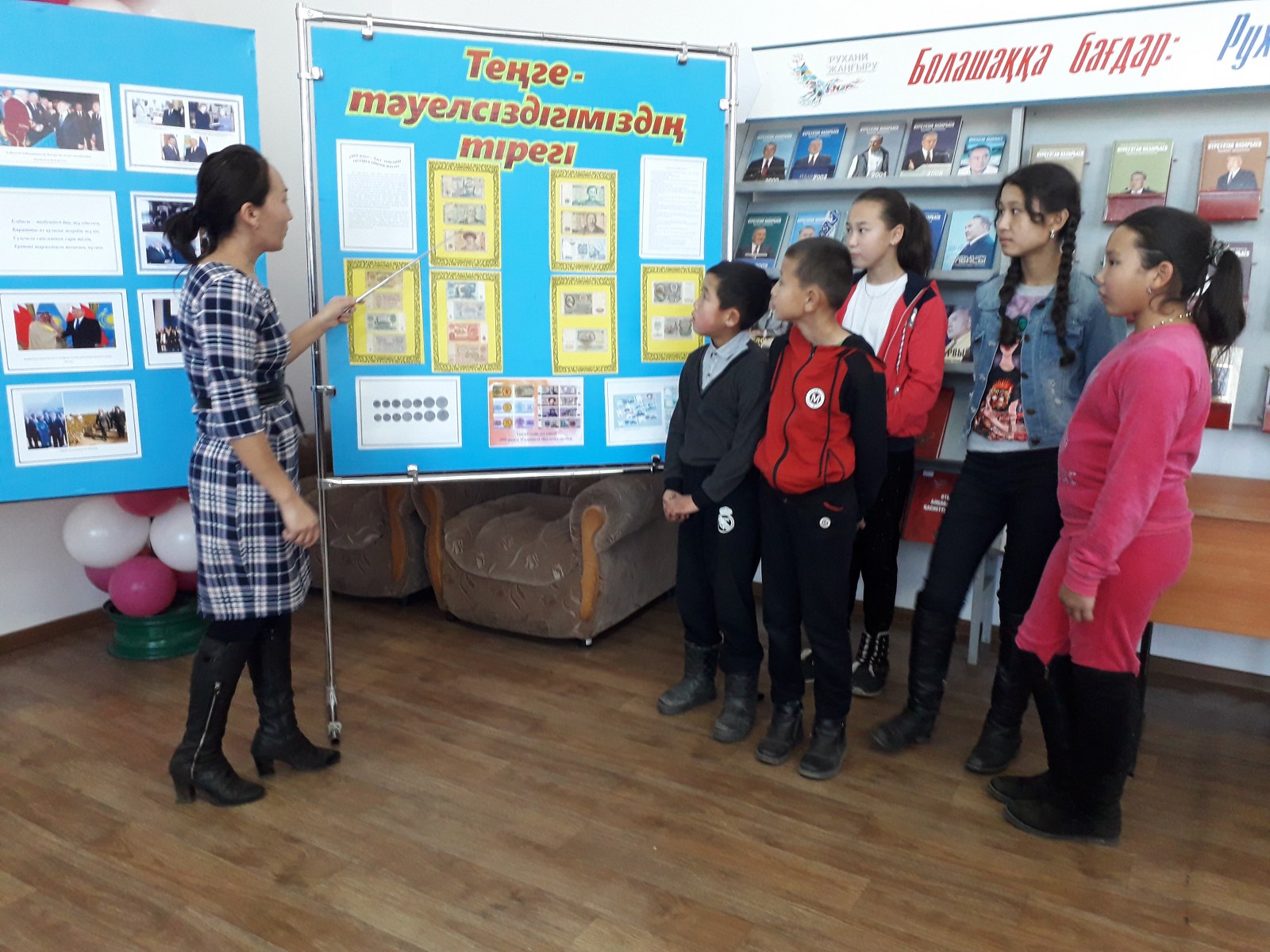 Қазақстанның ұлттық теңгесін жасауға екі жыл уақыт қажет болды. Себебі бұл көп еңбекті, күшті қажет ететін күрделі жұмыс. Қазақстан өз төл ақшасын шығару үшін 1990 жылы теңгенің үлгісін жасайтын арнайы жұмысшы тобын құрды. Олар барлық дүние жүзіндегі мемлекеттердің және ел тарихындағы теңгелермен танысты. Алайда Қазақстанда теңге жасайтын арнайы мамандар мен шеберханалардын жоқтығынан, бұл саланың қызметкерлерін шетелден іздеуге тура келді. Оны «Лонро» ағылшын мекемесінің «Харрисон» деп аталатын фирмасы қолға алды. Беттеріне қазақтың біртуар ұлдарының суреттері салынып, сапалы, арнайы дайындалған қағаздан жасалды. Бабалар бейнесін кескіндегендер Қайролла Ғабжанов, Меңдібай Алин. Міне, содан бастап төл теңгеміз егемендіктің символына айналып, тәуелсіздіктің сенімін одан әрі нығайта түсті. Бүгінгі таңда да теңге өзінің тұрақтылығын сақтап, ел экономикасын нығайтуға үлесін қосуда. Осы айтулы мереке қарсаңында аудандық орталық кітапхананың ұйымдастыруымен «Теңге – тәуелсіздігіміздің тірегі» атты суретті көрме ұйымдастырылды. Теңгенің дүниеге келу тарихы туралы көрме жасалды. Көрмеге Елбасының еңбегі, еліміздің алғашқы және қазіргі уақытта қолданыста жүрген теңгелері, ақшаға қатысты дәйек сөздер жазылып оқырмандарға таныстырылды.