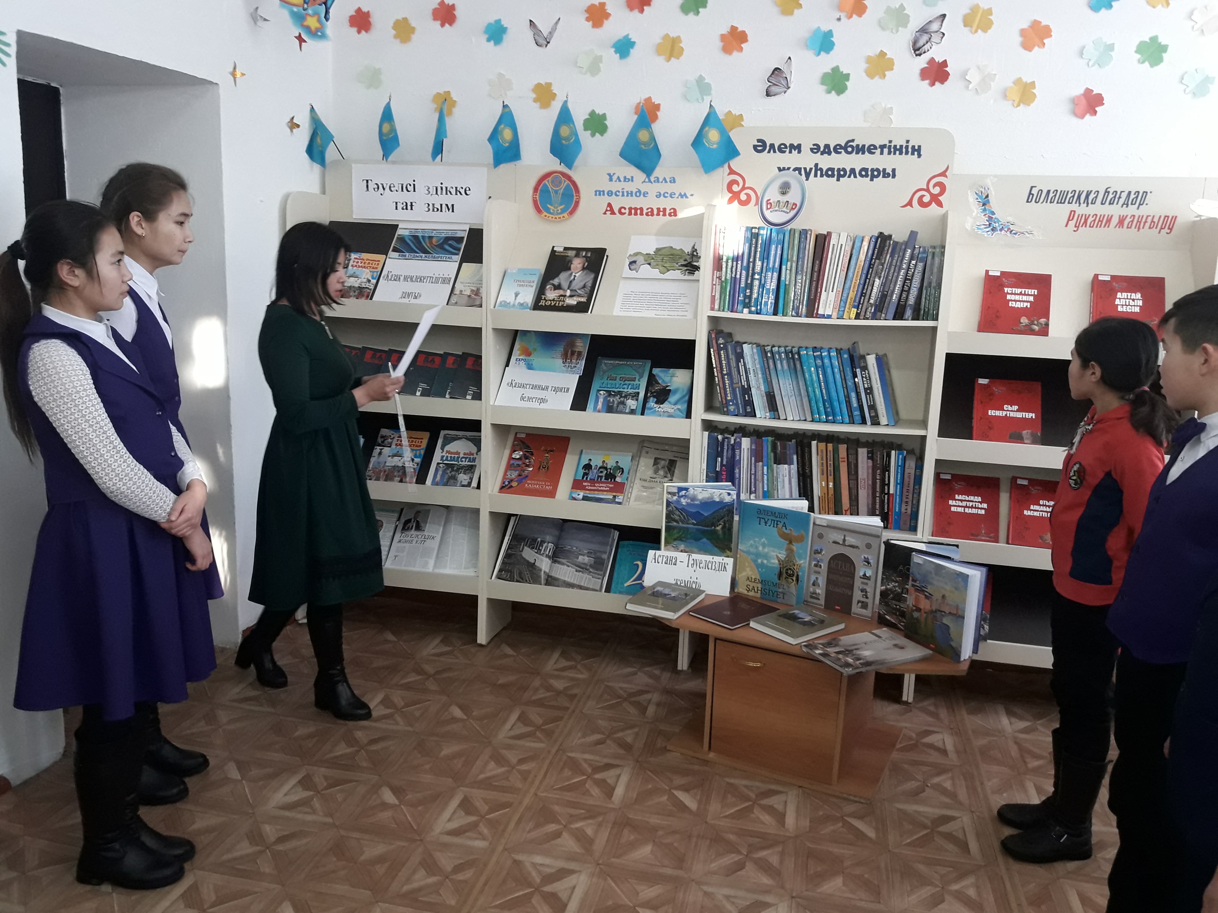 Елбасы Н.Ә.Назарбаевтың Жолдауы мен бағдарламалық құжаты, альбомдар, мерзімді басылымдар, фото-суреттер қойылды.