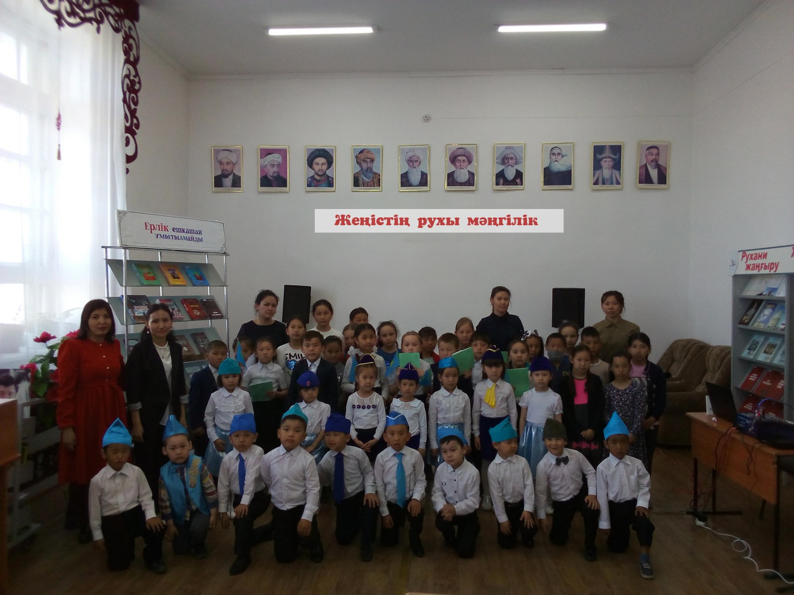 9 мамыр – Жеңіс күніне орай халқымыздың даңқты ұлдары мен қыздарының майдан және тылдағы өшпес ерлігі мен ерен еңбектерін ұлықтау, жас ұрпақтың бойына отансүйгіштік қасиеттерді сіңіру, тарихымызды тереңнен тануға баулу мақсатында Амангелді аудандық орталық балалар кітапханасы «Жеңістің рухы мәңгілік» атты әдеби сазды кеш өткізілді. Іс-шара бейбіт өмірге жете алмаған, ерлікпен қаза тапқан ағаларымыз бен апаларымыздың рухына бас иіп, еске алауға арналған бір минут үнсіздікпен басталды.