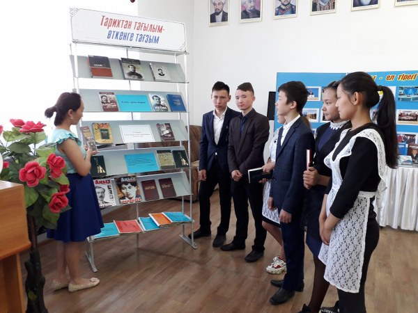 Аудандық орталық кітапхананың оқу залында 31 мамыр Саяси қуғын - сүргін құрбандарын еске алу күніне орай «Тарихтан тағылым- өткенге тағзым» атты кітап көрмесі ұйымдастырылды. Көрмеге Ә. Боранбаев орта мектебінің оқушылары қатысты. Көрменің мақсаты саяси қуғын-сүргін құрбандарын еске алу. Олардың өмір жолдарымен оқырманды тереңірек таныстыру, өткен тарихымыздан тағылым ала отырып, бүгінгі ұрпаққа әр кітап арқылы өнегелі тәрбие беру, оларды Отанын сүюге, елінің , жерінің адал патриоттары болуға баулу, олардың санасына тарихи шындықты жеткізу. Өткенді ескермей болашақты құру мүмкін емес. Сондықтан 1927-1953ж. ақтаңдақтар ақиқатын түсіндіруге ұмтылу. Қазақстанда 1997 жылдан бері жыл сайын 31 мамырда ҚР Президентінің Жарлығымен Саяси қуғын-сүргін құрбандарын еске алу күні аталып келеді. Тәуелсіз Қазақстанның әрбір азаматы үшін cаяси қуғын-сүргін құрбандарын еске алу және есте сақтау қасиетті парыз.