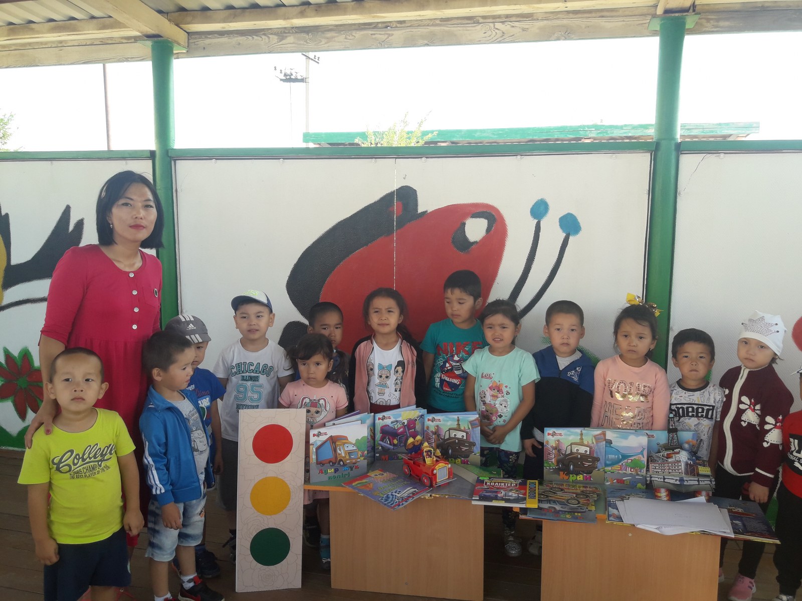 Бүлдіршіндерді сақтыққа тәрбиелеу, жолда жүру ережесі туралы білімдерін толықтыру, іс-жүзінде асыра білуге үйрету. Жолда жүру ережелерін ойда сақтай білуге үйрету. сақ болуға, көшеде өздерін дұрыс ұсатап жүруге тәрбиелеу мақсатында өткізілді.