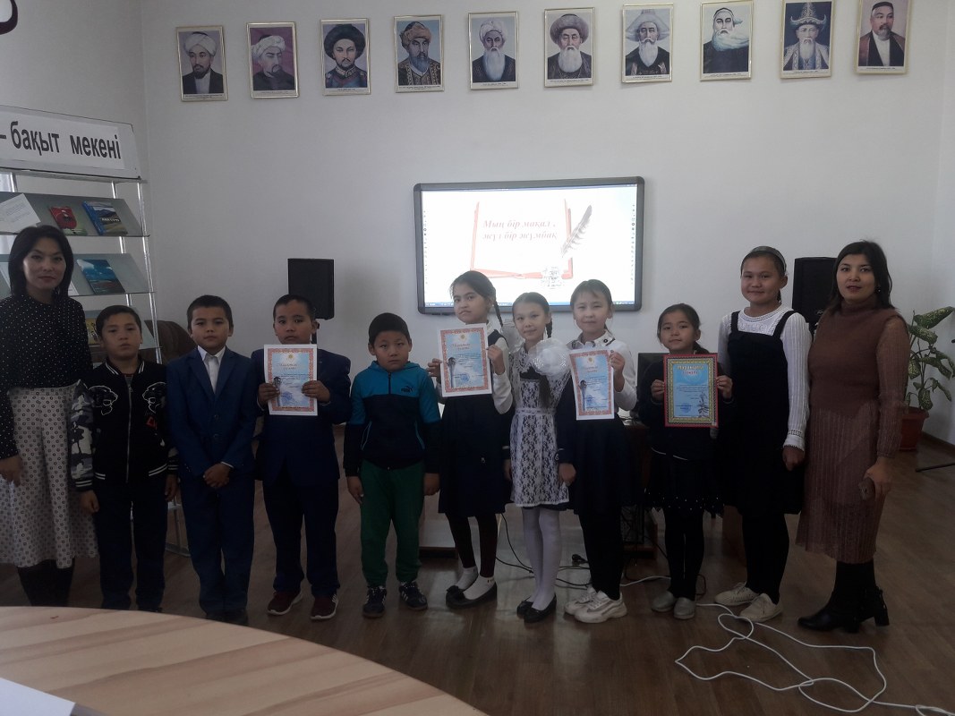 Міне , осы жайттардың барлығы ескеріле отырып, аталмыш тақырыпқа орай Амангелді аудандық орталық балалар кітапханасы салт-дәстүрлеріміздің мән- мағынасын аша түсуге мол септігін тигізетін «Мың бір мақал- жүз бір жұмбақ» атты сайысын өткізді. Бұл сайысымызға Амангелді жалпы білім беретін орта мектебінің 6 сынып оқушылары 4 топқа бөлініп, 5 бөлімнен тұратын сайыста әр топ жылдамдықпен , өздерінің сөз қорларын, білімдерін жақсы көрсете білді. Іс- шарамыздың мақсаты халақ ауыз әдебиетінің түрлері мен таныстыра отырып, балаларды адамгершілікке , адалдыққа , ата- баба асыл өсеттерін ұмытпай отыруға тәрбиелеу .Сайыс соңында қатысушыларымыз марапатталды.