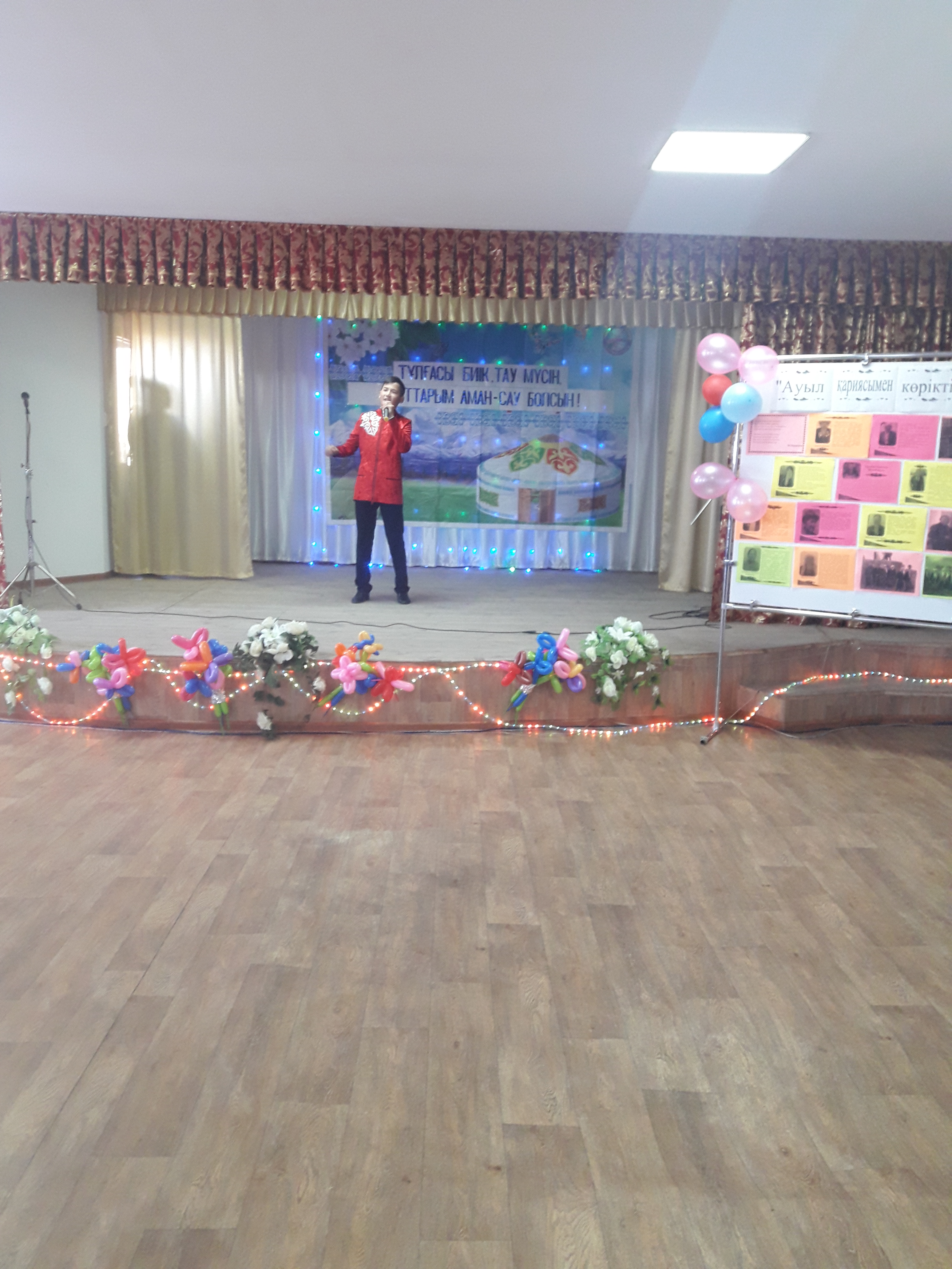 Ауыл кітапханашысы М.Т.Нұржанова ауыл қарияларына арнап фото-көрме әзірледі. Мерекелік кешті Сапабекова Зумрет және Әбдібекова Айдана жүргізді. Ауыл қариялары мектеп мұғалімі Байкенов Жанкелді және клуб меңгерушісі Жұмаганбетова Айгүлдің дайындаған мерекелік концертін тамашалады. Әлімжан Назерке, Шрайденов Жанболат, Ақмырза Аяулым, Балахметов Серікболсын, Сақан Айгерім, Жетпісбаева Жұмагүлсімнің жетекшілігімен дайындаған қыздар тобы әншілері, Бақытжан Назерке, Балахмет Жанбек және Өмірхан Сағдат ауыл қарияларына ән шашу арнады.