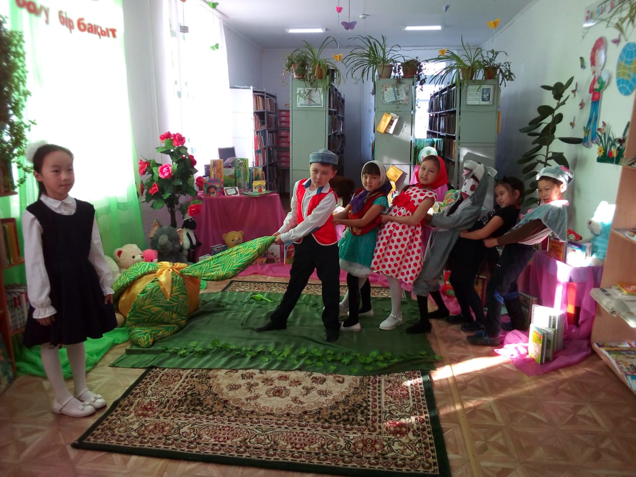 «Шалқан» ертегісісінің кейіпкерлерді сахналау барысында олардың мінез-құлқын жеткізе білу. Ертегідегі кейіпкерлердің сөз мәнерін, қимыл- қозғалысын келтіріп ойнауға үйрету. Балалардың ақыл-ойларын, сөздік қорларын, есте сақтау қабілетін дамыту мақсатында өткізілген болатын. Біздің қойылымға Ы.Алтынсарин атындағы орта мектебінің 3 «а» сынып оқушылары мен сынып жетекшісі Канафина Алтынай Сұлтанбекқызы қатысып, оқушылар өздерінің актерлік шеберліктерін жақсы көрсете біліп, келген көрермен қонақтарымыздың ыстық ықыласына бөленді.