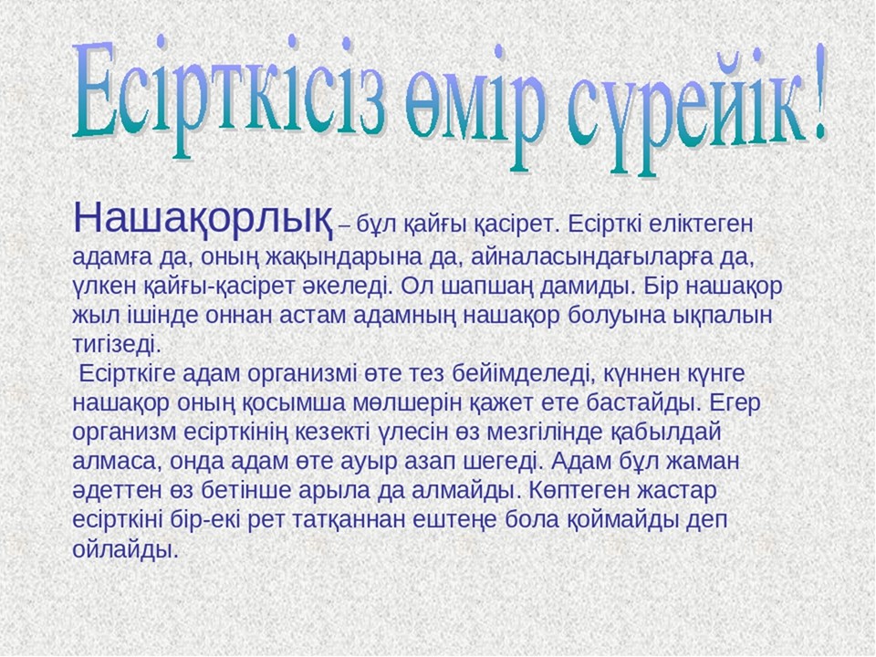 Байғабыл ауылдық кітапханашысы 26 маусым – халықаралық нашақорлыққа қарсы күрес күніне «Есірткіге жол жоқ» атты бейнеролигі ұсынылады.