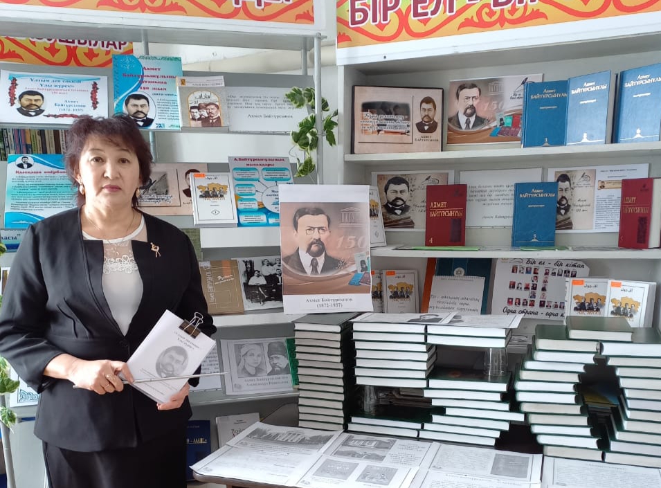 Ауыл кітапханашысы А.Байтұрсыновтың өмірі мен шығармашылық қызметін ашып көрсетіп, оқырман қауымға өз қаламынан туған кең көлемді шығармасы «Әдебиет танытқыш», «Маса» және бірнеше томдық кітабын көрмеге қойып, таныстырды. Ақынның жазған шығармалары мен еңбектері және мерзімді басылым беттеріндегі мақалаларына шолу жасалды.