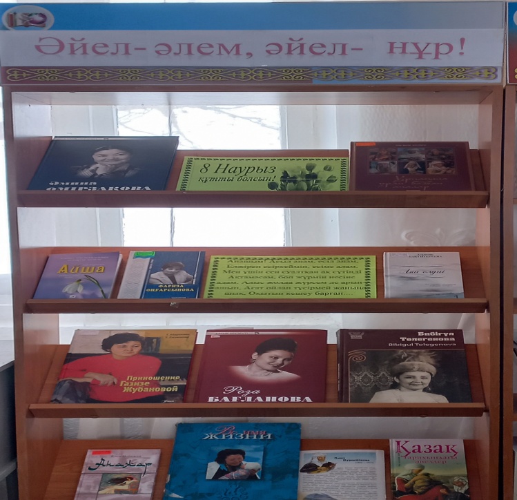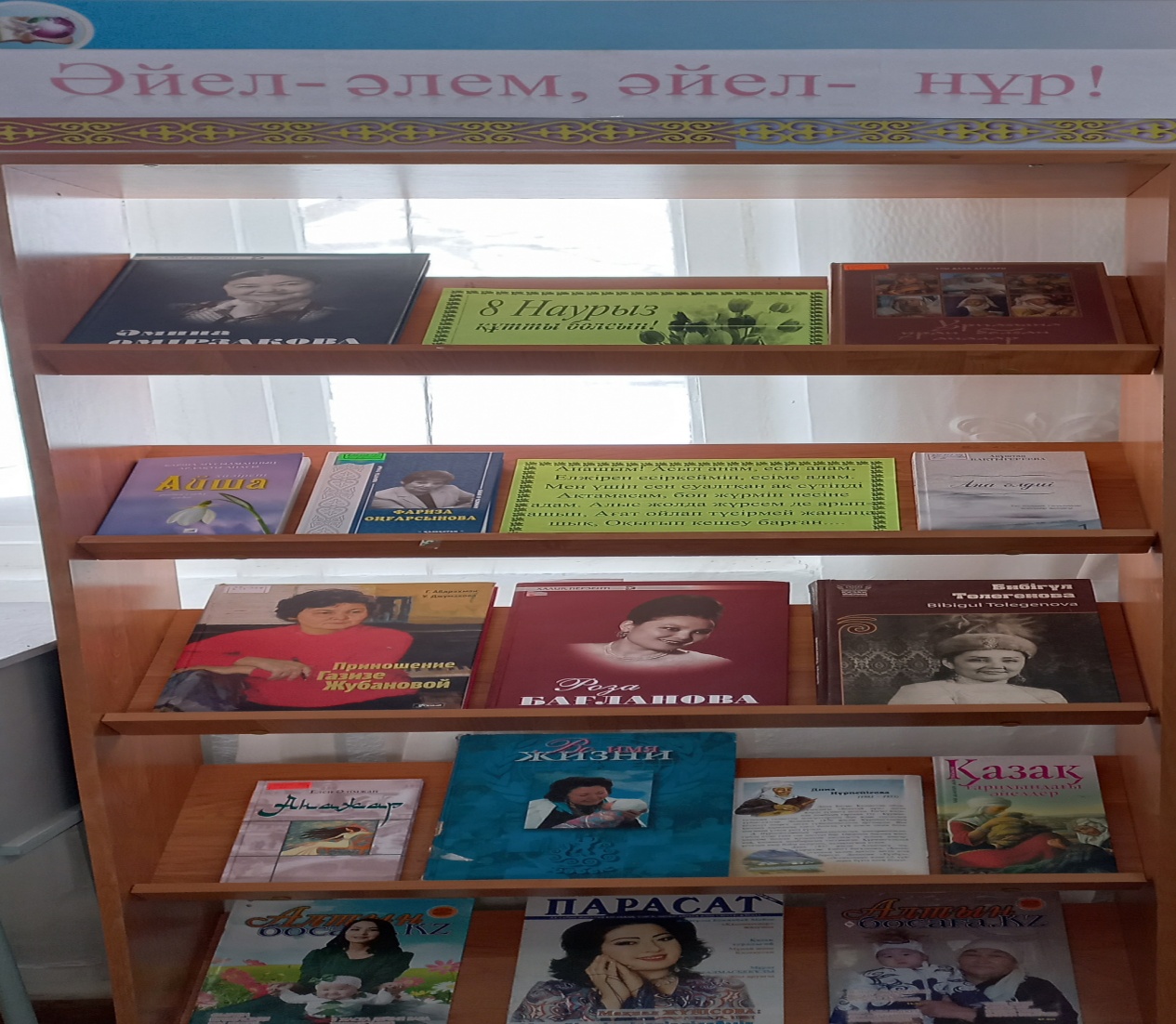 Көрмеден Ұлы даланың ұлы қыздары туралы әдебиеттерді, ғылымдағы, өнер әлеміндегі, қоғамның барлық саласында ерлермен бірдей еңбек етіп жүрген нәзік жандар жайлы жазылған әдебиеттерді көруге болады. Атаулы көрмені оқырмандар қызығушылықпен тамашалады.