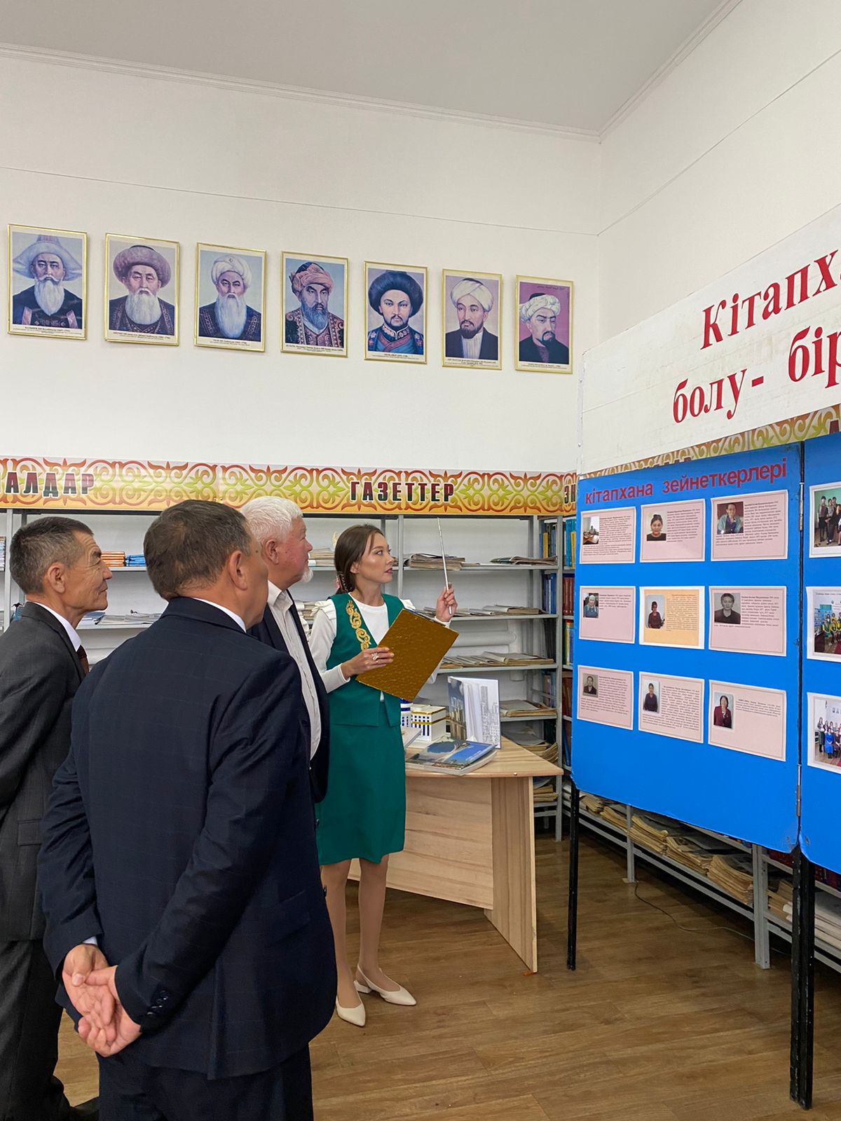 Оқырмандарға қызмет көрсету бөлімінің кітапханшысы Г. Қалмағанбетова кең көлемде жасалған «Ұлттың ұлы көсемі» және «Туған жерім-киелі мекен» атты кітап көрмесі жасап, шолу жасады.