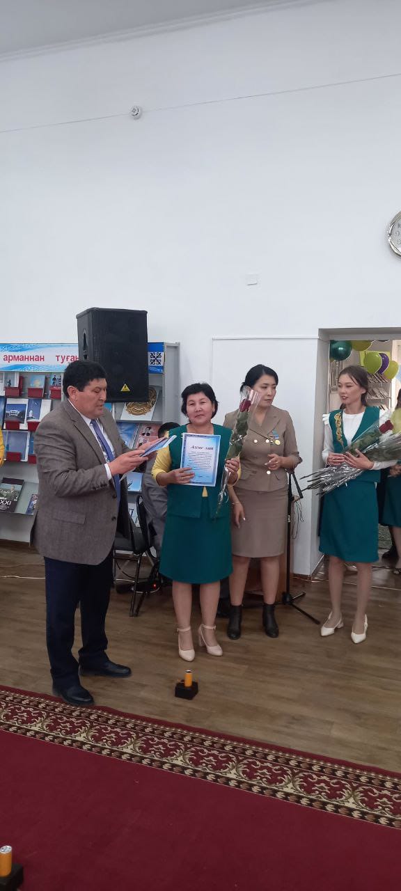 «Кітапхана – мәртебелі мамандық» атты кітапханашылар күніне арналған бағдарлама соңында Амангелді ауданы әкімдігінің мәдениет және тілдерді дамыту және спорт бөлімінің басшысы Сейдин Сағынғали Зәкірұлы кітапханашыларды мерекелерімен құттықтап, еңбек етіп жүрген кітапханашы әріптестерімізге, кітапхана жұмысының сан қилы әдістерін меңгеріп, кәсіби шеберліктерін одан әрі шыңдап, білімді де білікті маман ретінде оқырман көңілінен шығып, олардың талаптарын қанағаттандыру бағытында еңбектеріне толағай табыс тілеп, кітапханашыларды алғыс хатпен марапаттады. Кеш соңында кітапханашылар мерекесіне кітап бейнесіндегі торт әзірленіп, суық отшашу мен мерекелік ән орындалды.