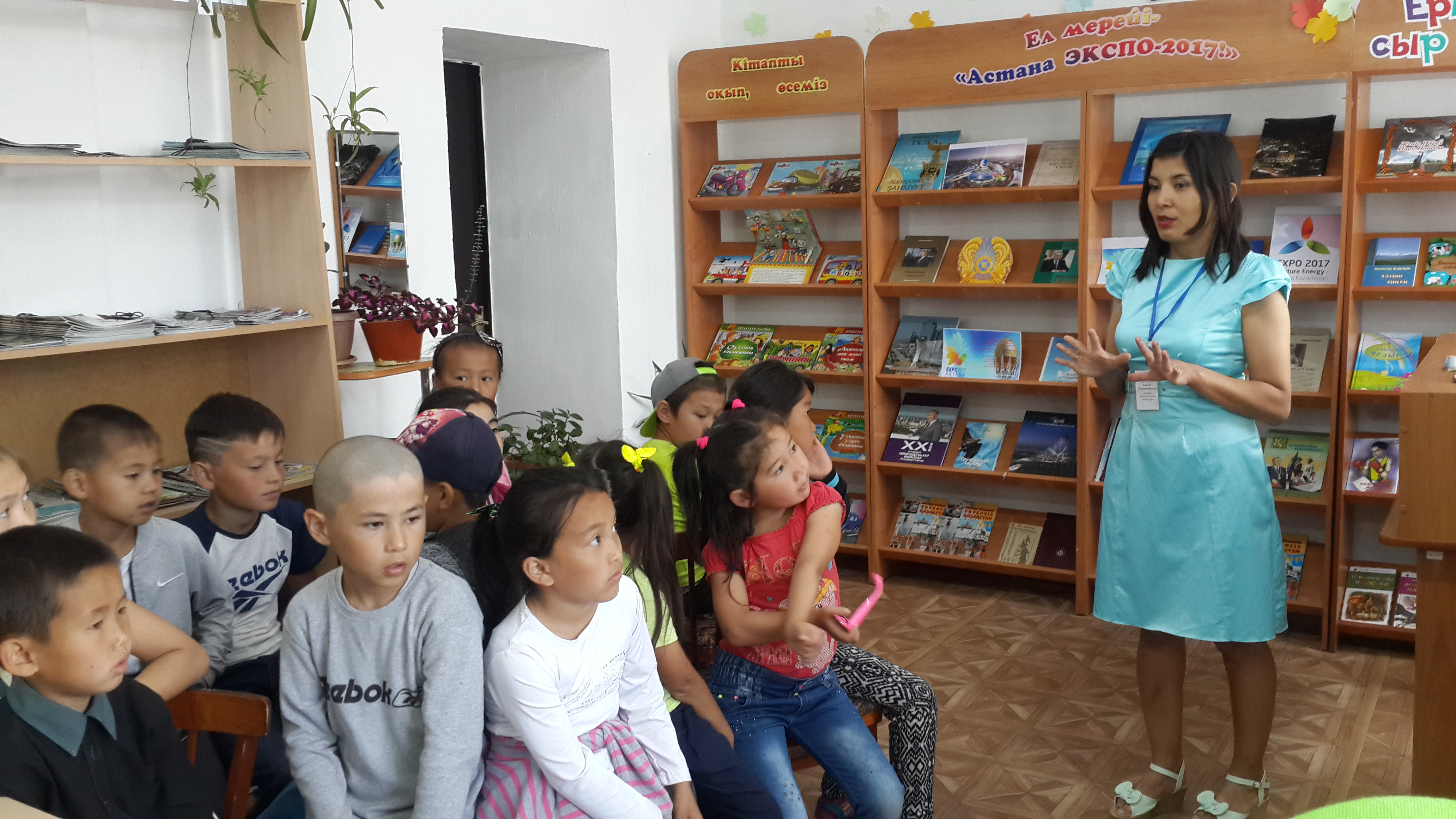 В современном обществе граждане нашей страны должны быть знающими, культурными и образованными. Всем известно, что одним из источников глубоких знаний является книга, в которой заключены знания нашей истории, научных достижений, глубоких знаний и культурного наследия народа. Для того, чтобы привить детям интерес к чтению художественных книг, в районной детской библиотеке были организованы экскурсии детей – участников групп «Жалын» и «Балдырған» летней пришкольной оздоровительной площадки «Лето -2017» при средней общеобразовательной школе имени Б.Колдасбаева. Они были ознакомлены с правилами поведения и режимом работы библиотеки, со специальной детской книжной выставкой и такими видами книг, как книжки –буклеты, игрушки, раскрасками и многими другими.